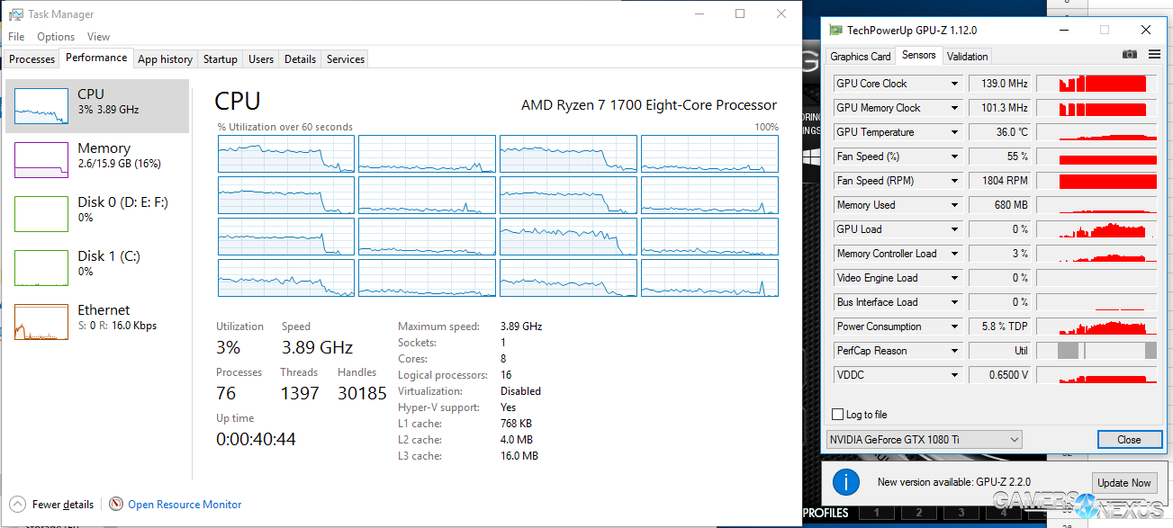 Testing during the campaign, we took spot measurements throughout the entire tutorial play session over a period of about 20 minutes, with a couple of other measurements that ran for 5 minutes per logging period. This was with a 1080 Ti SC2 at 4K and Highest settings. We’ll look at comparative benchmarks momentarily, but we first want to define what works for a benchmark.