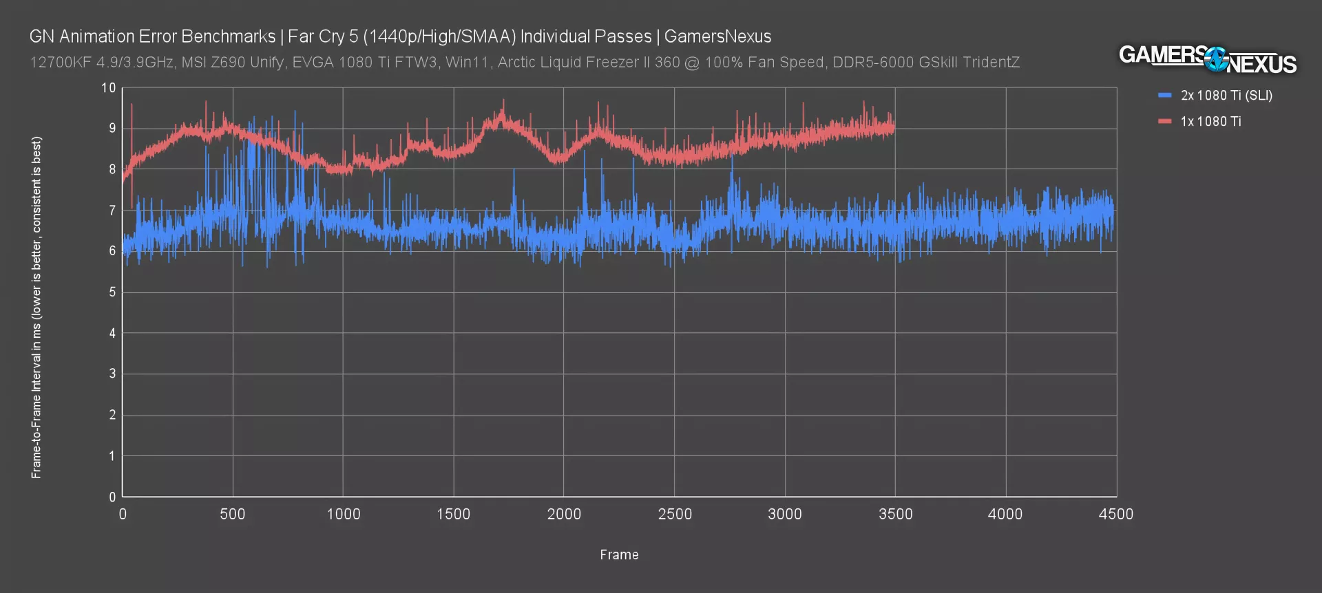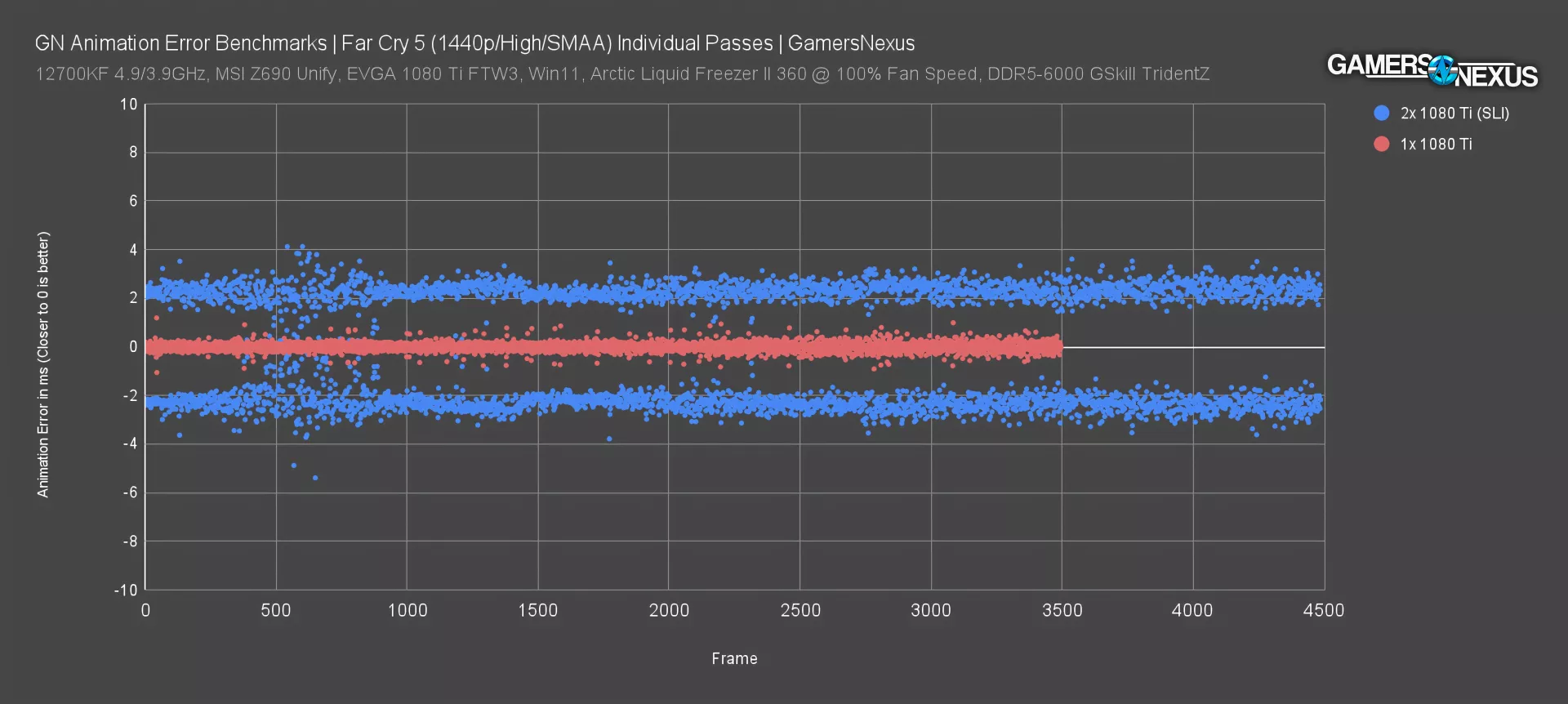 We aren't exploring which method NVIDIA or AMD used to deal with microstutter; that's a subject for another time, and that time was 12 years ago. Today, we're just showing a real world example of a situation where animation error was a risk.