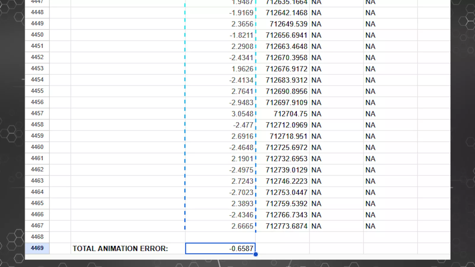 Again, the result of the formula can be positive or negative, but further away from zero is always worse. Adding together all the positive and negative animation errors for a logging period will typically cancel out, so to get a useful total we need to take absolute values.