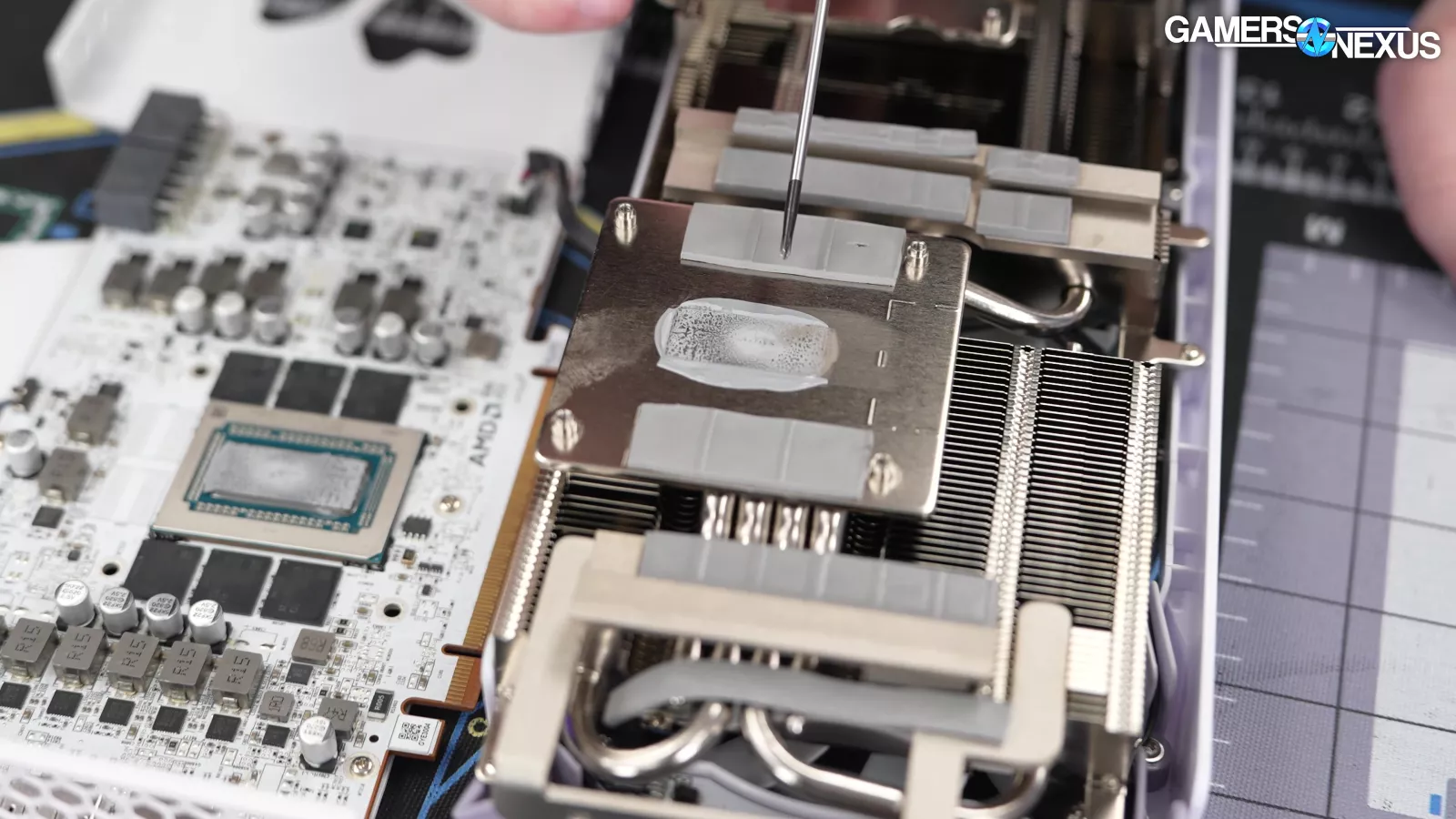 And looking at the cold plate, it looks like Yeston uses a phase-change pad that has pretty even paste distribution with the exception of the center, where we’re seeing a stronger contact force.