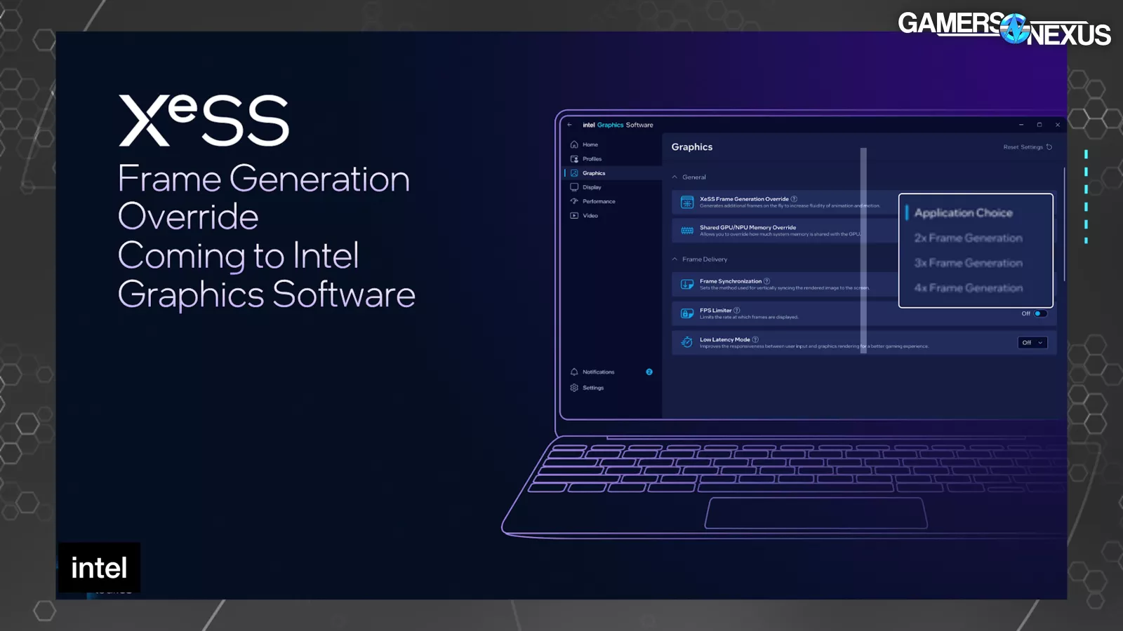 The new “XeSS Frame Generation Override” setting in the driver software allows the user to set 2x, 3x, or 4x mode.