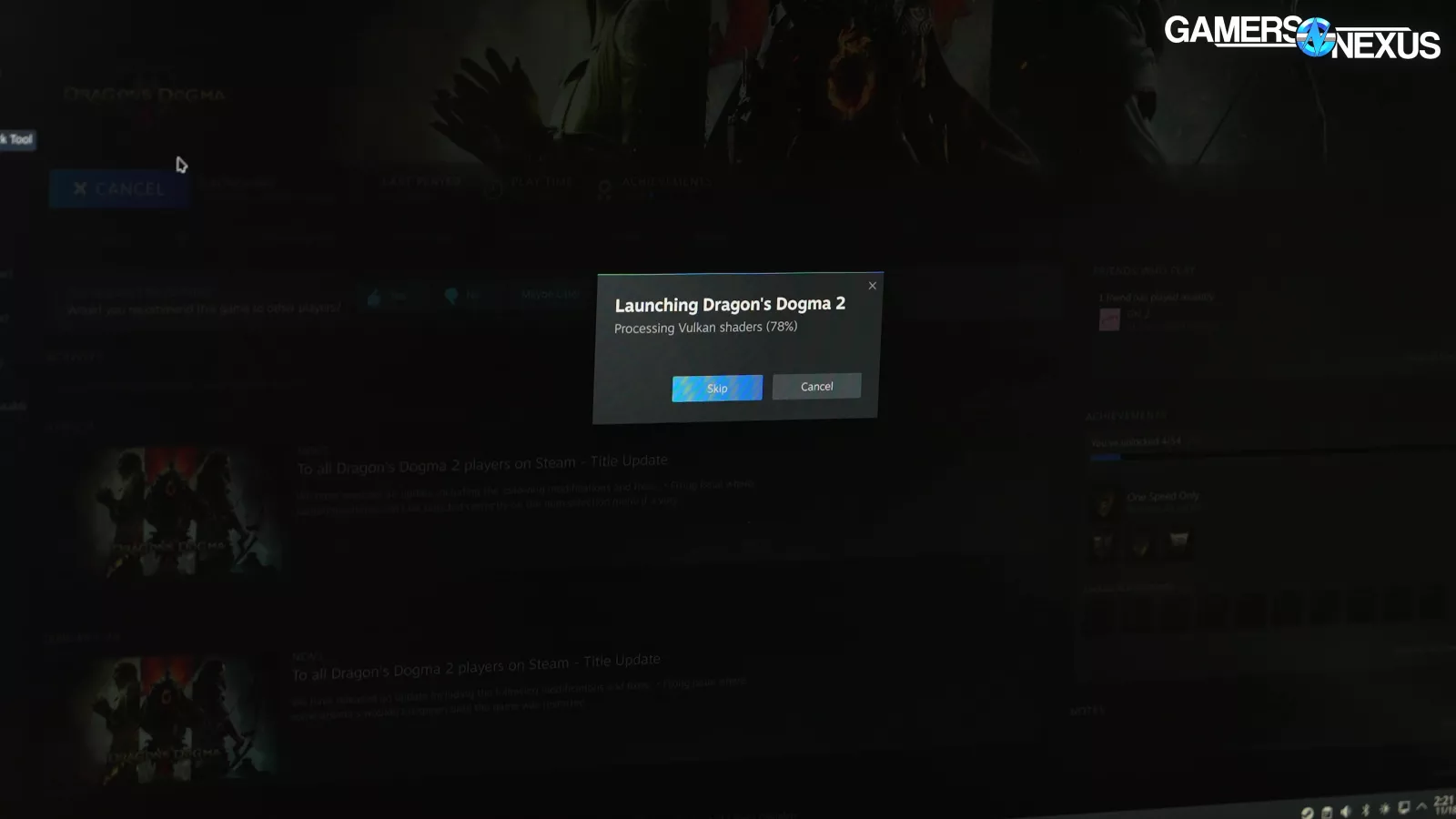 Steam's first-time shader compilation step took an extremely long time, especially with NVIDIA cards, up to 25 minutes for Starfield on one of the NVIDIA cards we tested. Many of the Steam games we tested forced tiny shader cache updates every day, which is behavior we've seen on the Steam Deck as well.