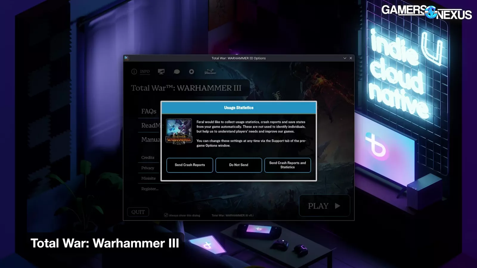A few Steam games have native Linux branches, which Steam always prioritizes for download on Linux. Unfortunately, sometimes the native Linux versions suck. In the case of Total War: Warhammer III, the Linux build lags significantly behind the Windows version. It looks like most users opt to run the Windows build through Proton instead, so that's what we tested.