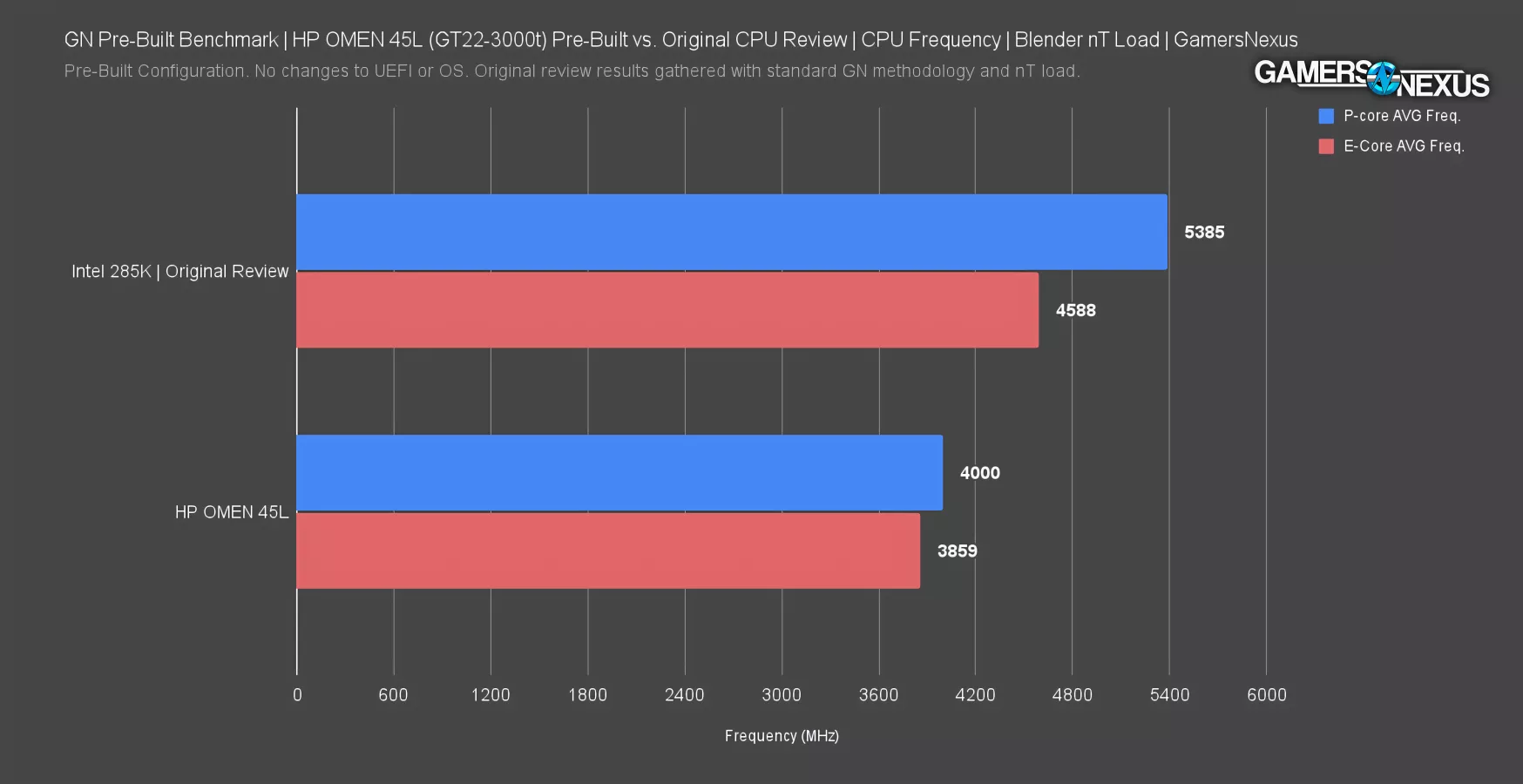 Our HP Omen 45L’s 285K CPU operated 1.4GHz below its actual spec and we analyze why it performed so poorly