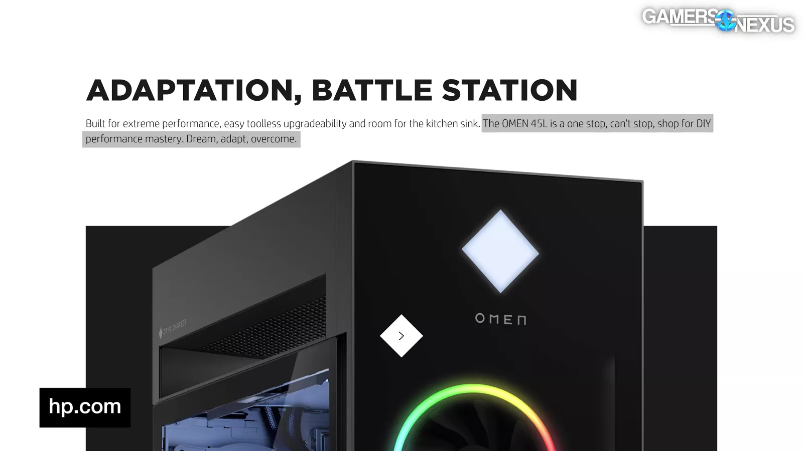 The marketing copy will continue until the prebuilts improve. The OMEN 45L apparently has room for the kitchen sink, as long as that kitchen sink doesn’t use a PCIe slot.