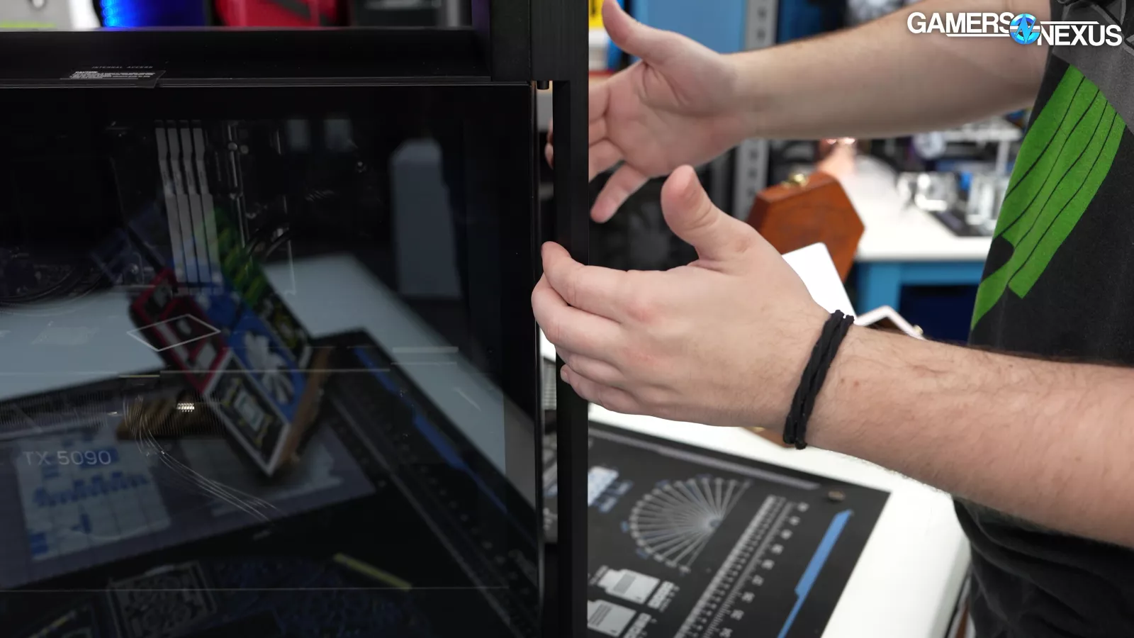 Using an MATX motherboard in an ATX case is technically fine, but restricts the user from adding any other PCIe card below the GPU, and we were told there’d be kitchen sinks.