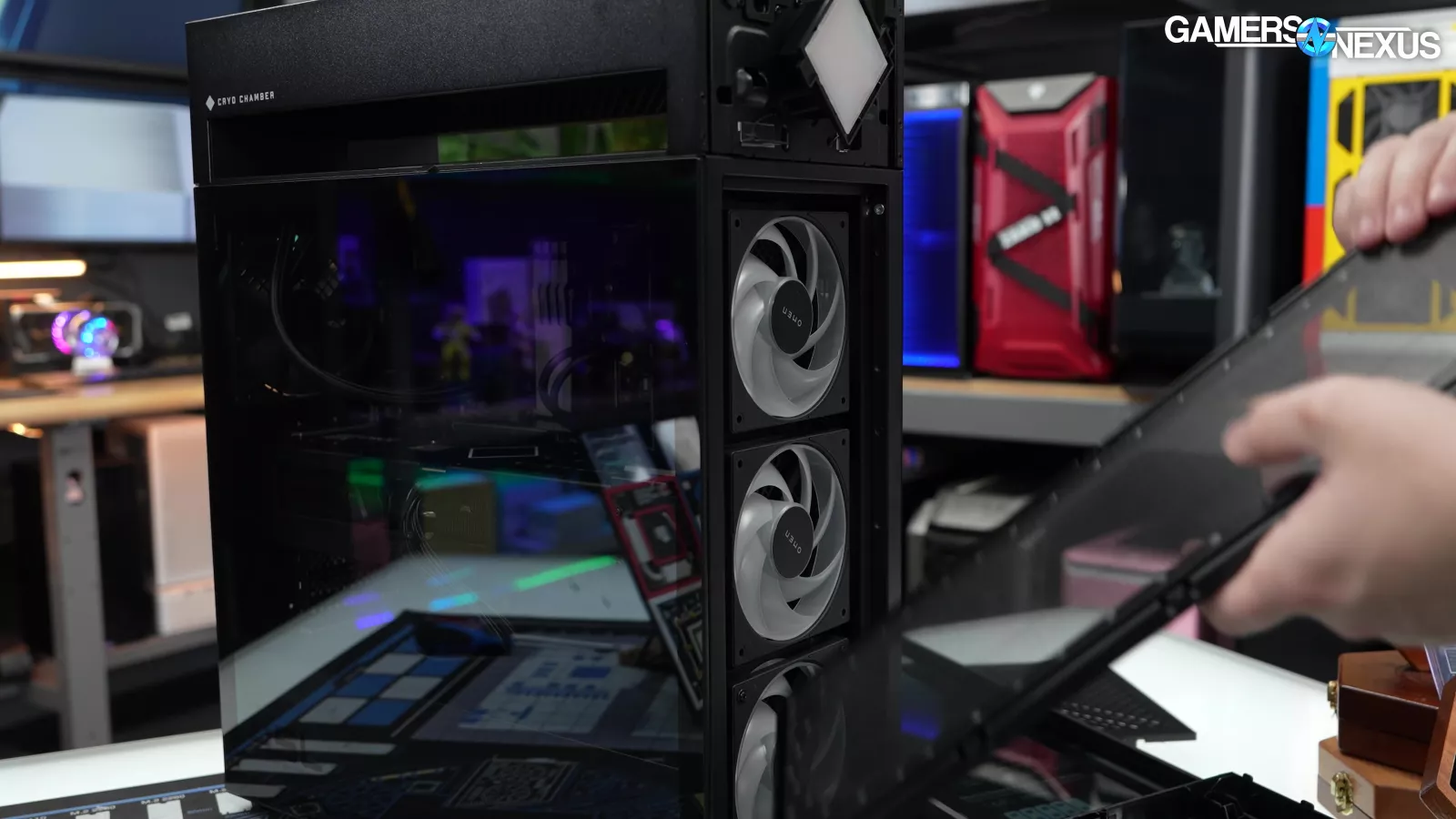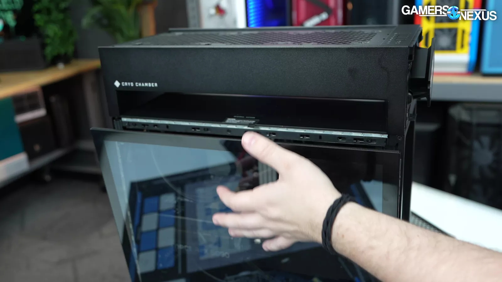 - Our HP Omen 45L came equipped with a 285K, RTX 5090, and a case with an “Omen Cryo Chamber”