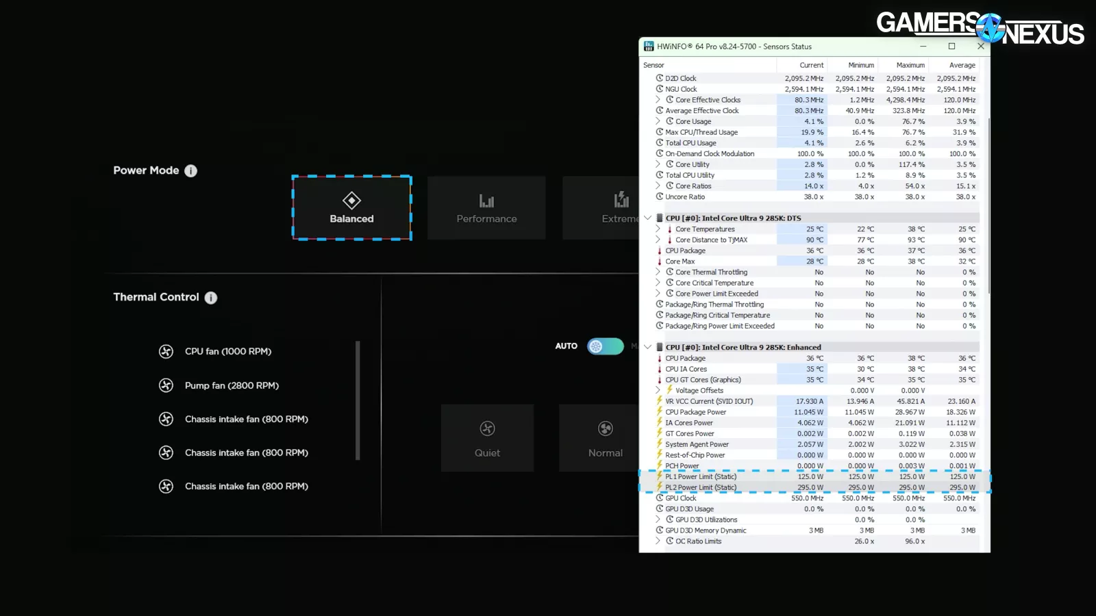 The Performance Control tab is where HP hid the CPU power limit controls, but only by way of 3 preset modes. “Balanced” is the default, setting PL1 to 125W and PL2 to 295W. “Performance” sets PL1 to 190W, and PL2 still at 295W.